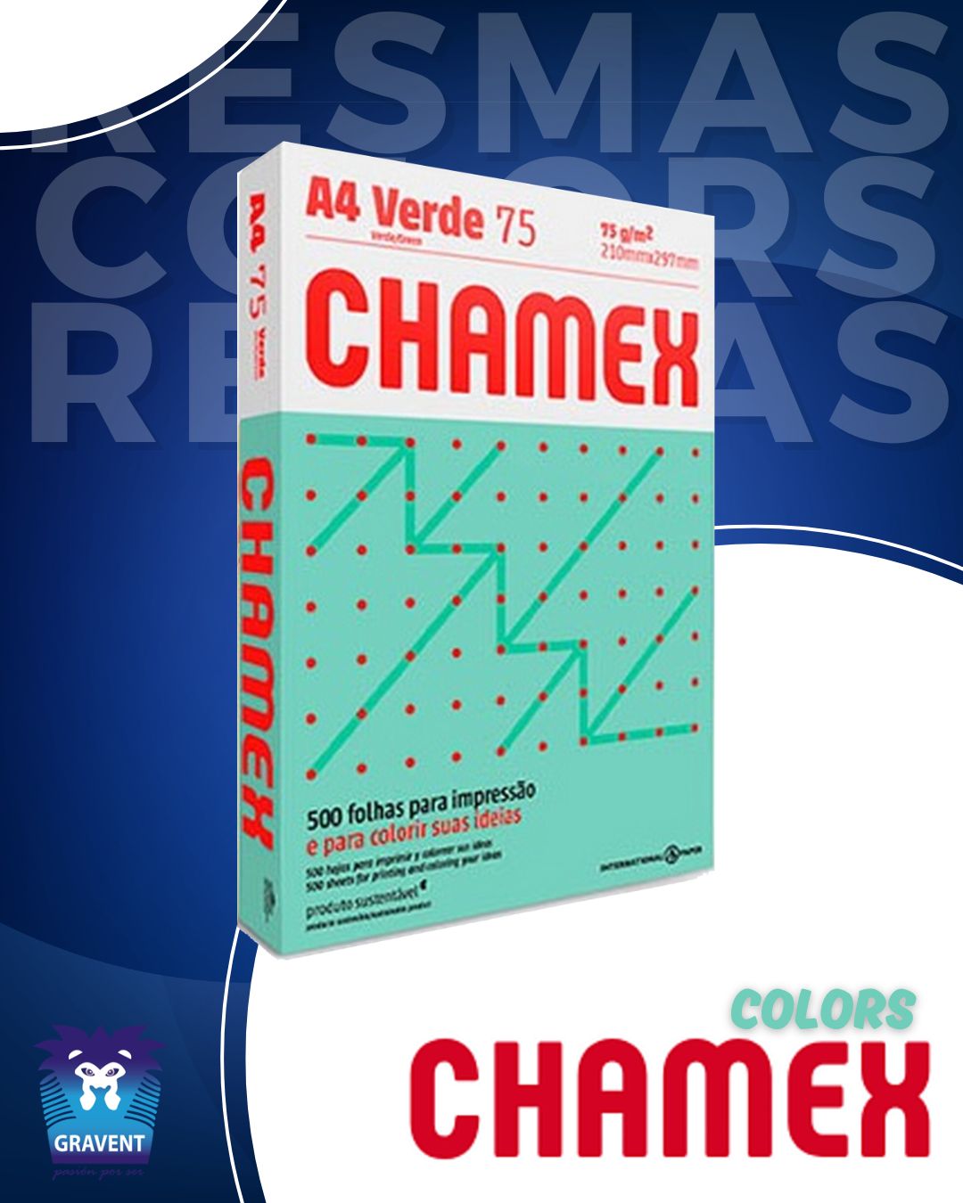 Resmas CHAMEX COLORS 75 grs. x 500 hjs. VERDE
